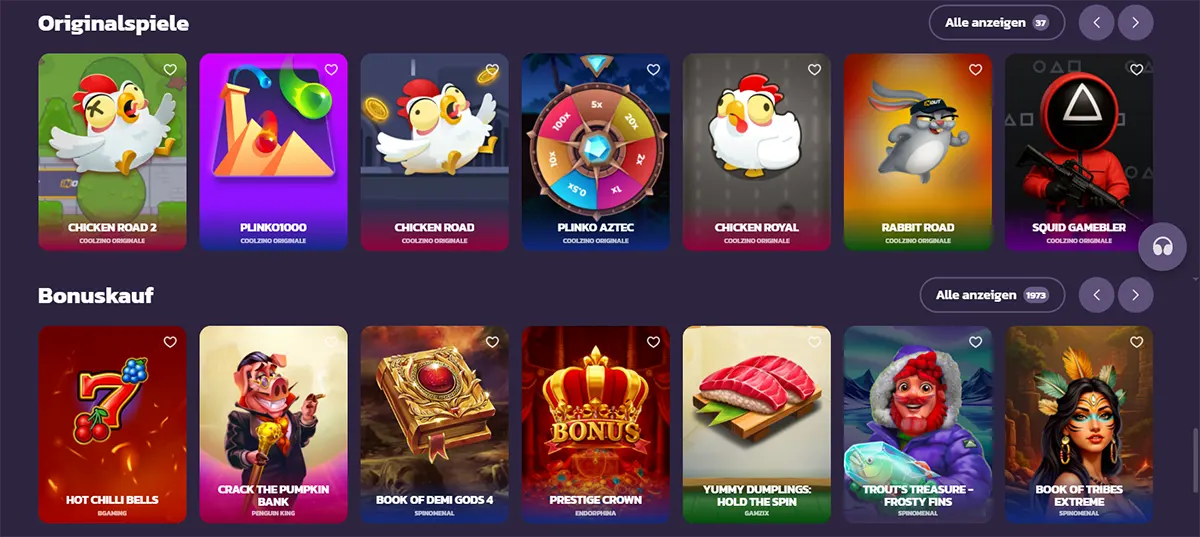 Spielkatalog vom Coolzino Casino